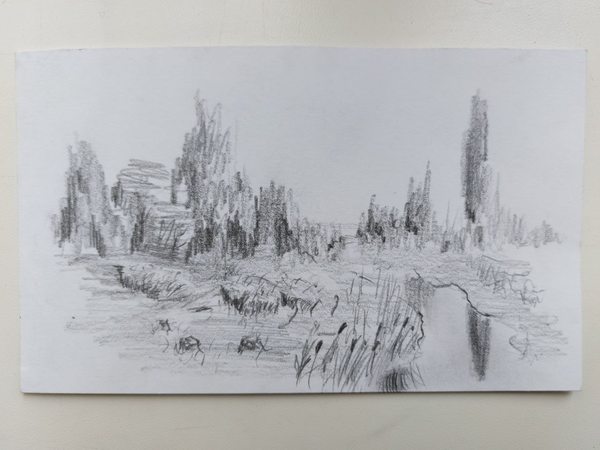 На виставці представлені пленерні роботи, створені під час навчання та практики на природі (пленеру). У техніці акварелі студент відтворює мінливість світла та природні відтінки навколишнього світу: від ніжних пастельних тонів до насичених барв заходів сонця та грозового неба. Графічні роботи виконані графітним олівцем, дозволили максимально передати контраст і текстуру природних форм. Ці техніки створють баланс між витонченістю акварельних відтінків і чіткістю графічних ліній, що захоплює глядача своєю точністю та гармонійністю.