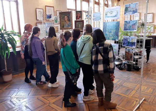 "Миті під небом" - виставка пленарних робіт, в стінах художньо-меморіального музею О. Осмьоркіна, зібраних за чотири роки навчання, від акварельних етюдів, замальовок тварин і рослин, пейзажів до олійного портрету у середовищі, що відповідають їх програмному навантаженню під час літніх практик. Студенти розказали про особливості пленерного живопису, що було актуальним, оскільки учні художньої школи також влітку проходитимуть пленерну практику, деякі з яких - вперше.