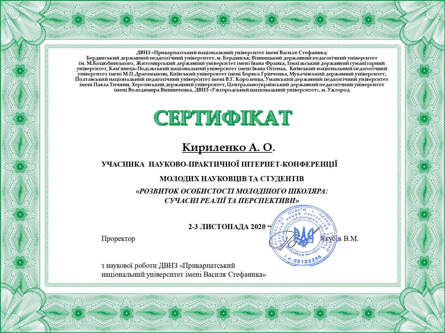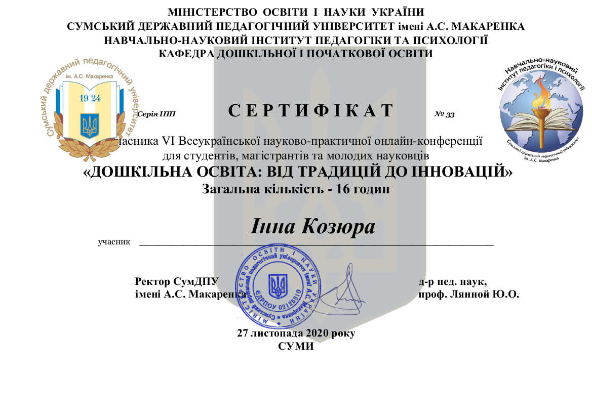 Студенти факультету педагогіки та психологіїї спеціальностей 012 Дошкільна освіта та 013 Початкова освіта постійно підвищують свій професійний рівень шляхом участі у різих проєктах "спільноти ВСЕОСВІТА", "Цифрове видавництво MCFR" та ін.
