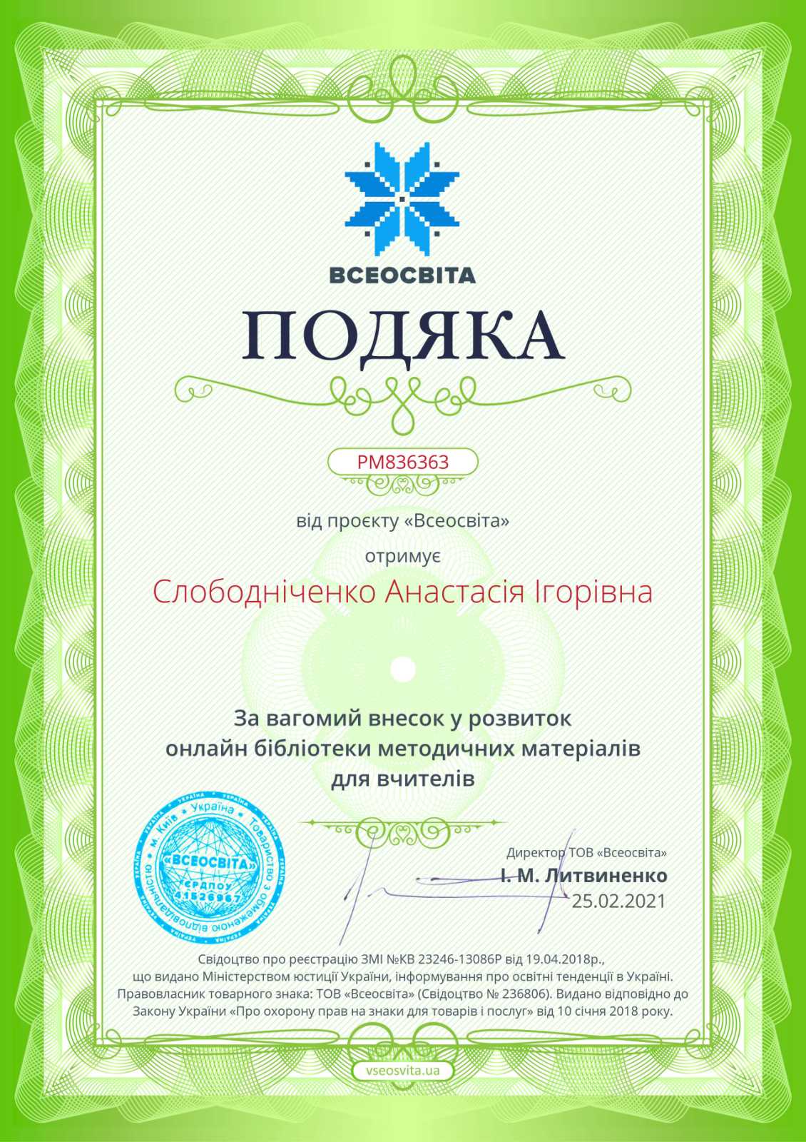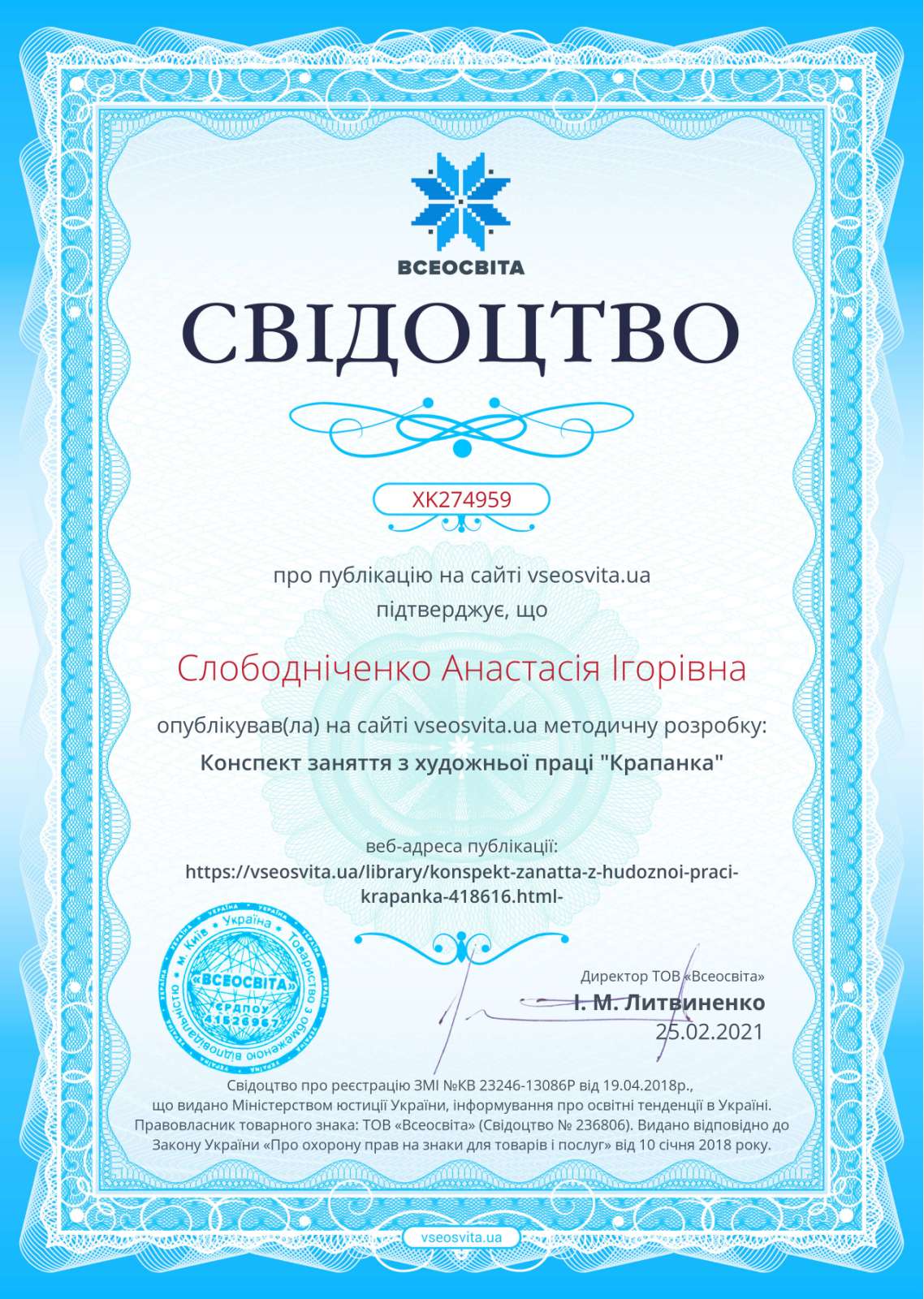 Свідоцтва про авторські досягнення