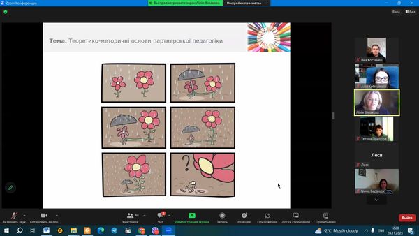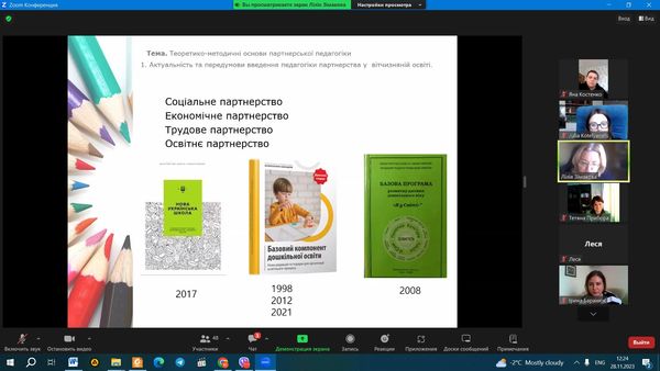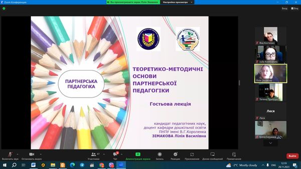 У рамках співпраці між кафедрою дошкільної та початкової освіти ЦДУ ім. В. Винниченка та кафедрою дошкільної освіти ПНПУ ім. В. Г. Короленка 28 листопада відбулася гостьова лекції для здобувачів освіти першого (бакалаврського) та другого (магістерського) рівня вищої освіти спеціальності 013 Початкова освіта та 012 Дошкільна освіта. Кандидат педагогічних наук, доцент кафедри дошкільної освіти Зімакова Лілія Василівна провела лекцію на тему «Теоретико-методичні основи партнерської педагогіки».