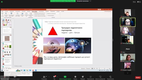 Гостьова лекція була цікавою за змістом і наповненням, а презентація вирізнялася оригінальністю. Родзинкою лекції було те, що Лілія Василівна вдало використала цікаві приклади роботи закладів освіти щодо співпраці з батьками дітей.