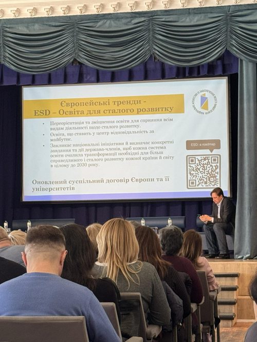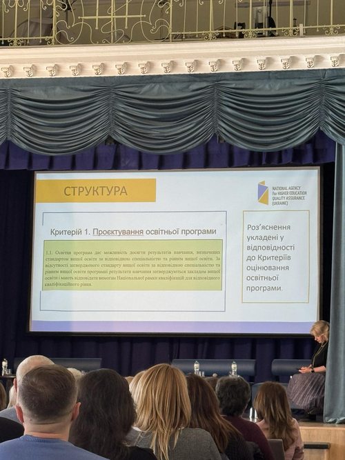 Зазначила, що, відповідно до європейських трендів, «освіта для сталого розвитку ставить у центр відповідальність за майбутнє». Наталія Стукало розповіла про ключові нововведення та зміни в акредитаційних процедурах.