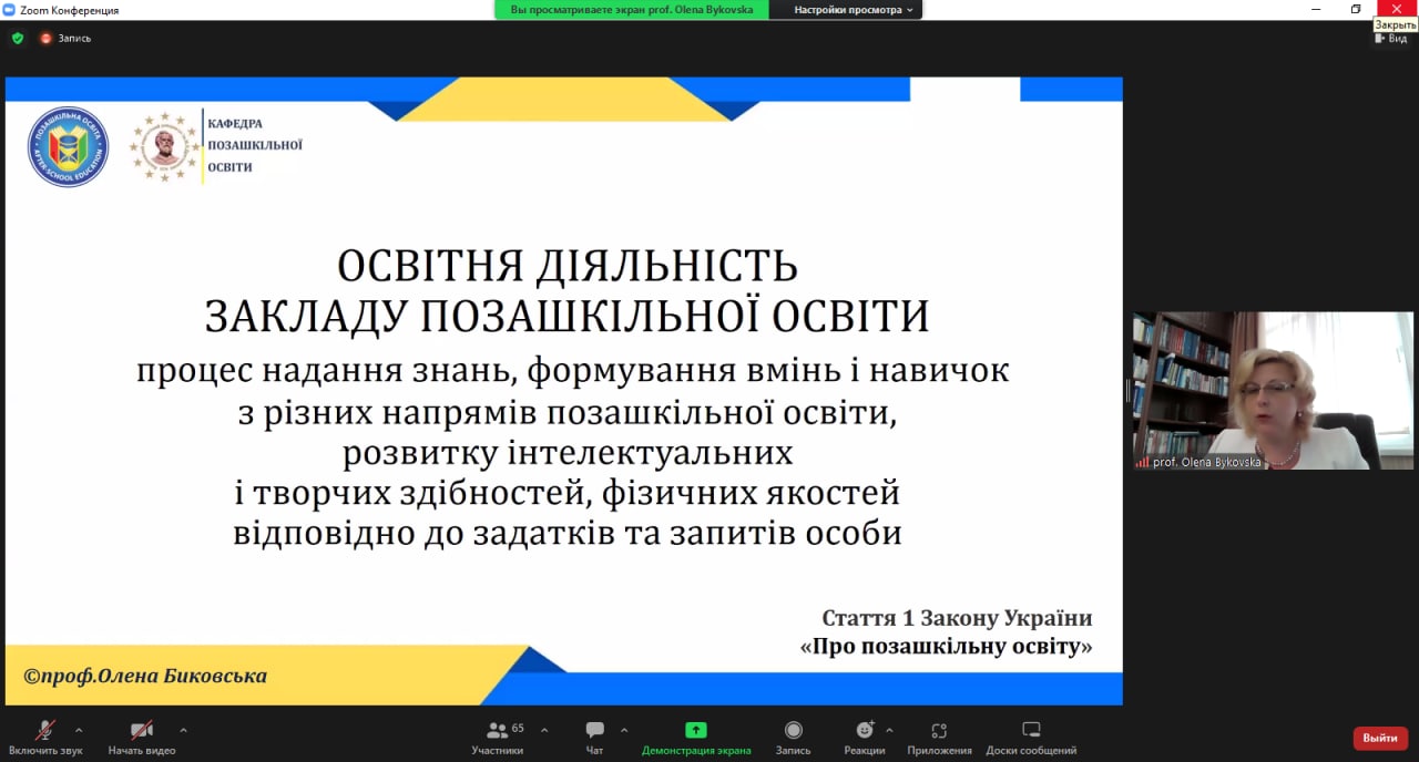 Під час заходу спікери ділилися власними кейсами ефективної діяльності закладів позашкільної освіти, зокрема, реалізації завдань національно-патріотичного виховання в умовах сьогодення., та свіжими ідеями, щодо подальшого розвитку позашкілля, задля задоволення творчих потреб дітей та учнівської молоді, розвитку їх здібностей, соціалізації та самореалізації.