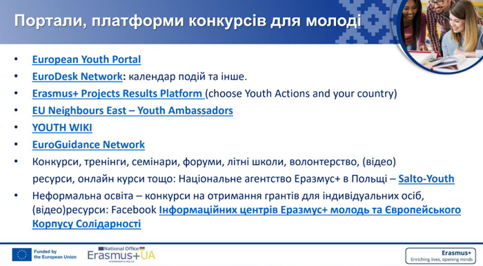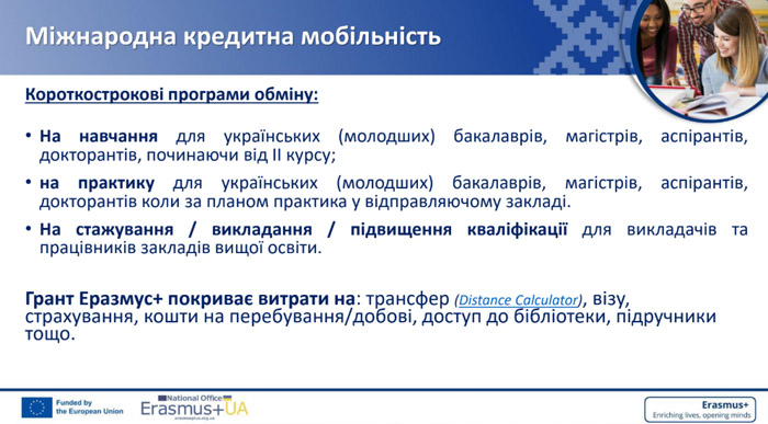 Студенти дізналися про можливості, які відкриває програма Erasmus+ для української молоді: навчальні обміни, спільні магістерські програми, стажування, волонтерство, участь у молодіжних проєктах та дослідницьких ініціативах. Окрім того, було представлено корисні портали, де можна знайти актуальні конкурси, гранти та освітні події.