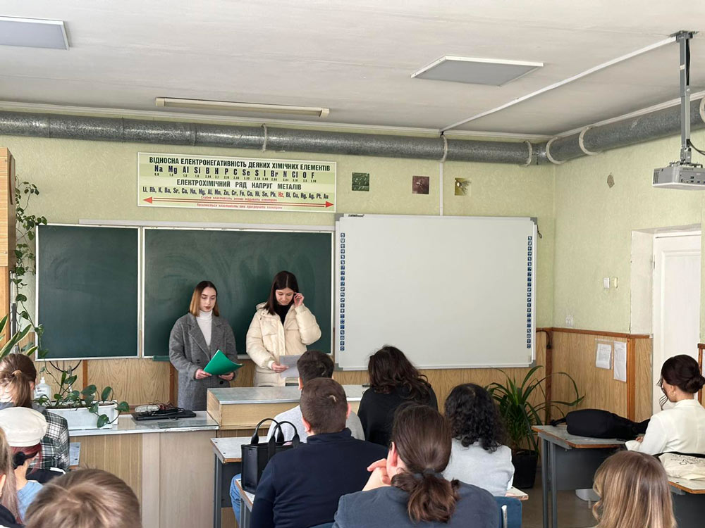 29 лютого 2024 року студенти 307 групи Л21Б Голумбовська Д., Рева Я. та Коростієнко М. відвідали КЗ "Вікторія П Кропивницької міської ради". Вони під час класної години спілкувались з учнями трьох 11-х класів.
