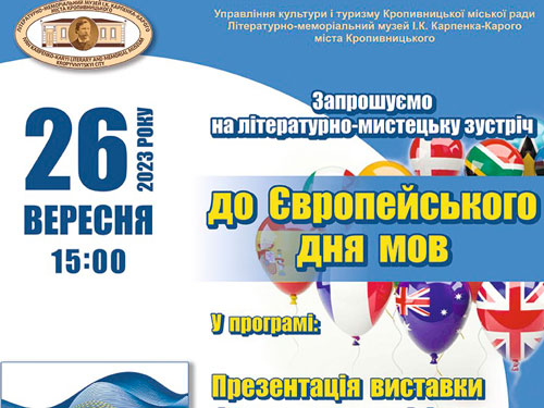 26 вересня 2023 року в Кропивницькому відбувалася низка заходів до Європейського дня мов. Зокрема, в стінах Літературно-меморіального музею І. К. Карпенка-Карого пройшла літературно-мистецька зустріч, присвячена творчості наших літераторів-земляків у перекладах мовами європейської спільноти: Володимира Винниченка, Ярослава Івашкевича, Ольгерда Бочковського, Євгена Маланюка, Юрія Яновського, Василя Козаченка, Сави Голованівського, Людмили Скирди, Віктора Близнеця, Костянтина Оверченка, молодого покоління — Надії Гармазій, Станіслава Новицького, Аліни Шевченко та інших.