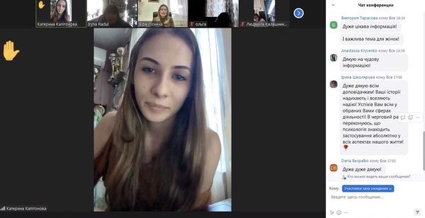 Мануйлова Ольга своєю презентацією продемонструвала яскраві і потужні приклади реальної взаємодії академічної освіти і практики. Вона відмітила високий рівень підготовки випускників кафедри, які працюють в її колективі. Чебоненко Валентина зазначила, що спільні освітні і просвітницькі проекти з кафедрою дозволяє готувати фахівців, які швидко, креативно і гнучко вирішують професійні завдання на усіх рівнях психологічної допомоги. Вона наголосила на тому, що в області великий попит на фахівців з психології та соціальної роботи. На сьогодні відкрито 162 вакансії на практичного психолога та 105 на соціального працівника. Ковальова Яна відмитила, що співпраця з кафедрою дає можливість проводити цікаві тренінги для громади області в центрі соціально-психологічної допомоги, студенти мають можливість проходити практику на базі центру. Тарасова Марія розповіла, яку роль відіграють психологи та соціальні працівники у ведені бізнесу та управлінні ним. Ліснича Олеся, висловила необхідність включення нових навчальних дисциплін, що є актуальними на сучасному етапі підготовки фахівців. Донцова Ірина, Заболотня Ольга – випускниці кафедри психології та соціальної роботи, поділились власним успіхом реалізації себе як фахівців в обраній ними професії.