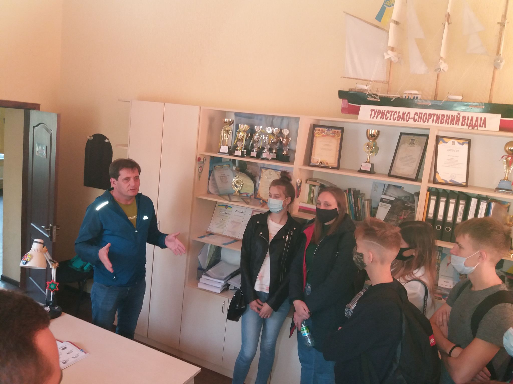 Андрій Андрійович детально розповів студентам-географам про основні напрями роботи закладу: туристсько-спортивну діяльність, краєзнавчі дослідження, національно-патріотичне виховання молоді. Була розкрита організаційно-територіальна структура центру, висвітлені методичні аспекти роботи гуртків зі скелелазіння, велосипедного, спортивного та пішохідного туризму, спортивного орієнтування, географічного краєзнавства, окреслені перспективи розвитку закладу, його кадровий потенціал, вимоги до працівників, оглянуто експозицію краєзнавчого музею, відкриття якого заплановано до кінця року.