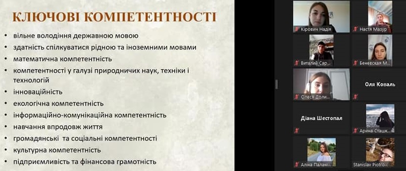 Під час спілкування зі студентами та викладачами Ольга Григорівна в загальних рисах розкрила концептуальні основи компетентісного підходу як освітньої парадигми, суть поняття «компетентність», проаналізувала набір компетентностей, формування яких передбачено навчальними програмами дисциплін, що складають освітню галузь «Природознавство» в діючому Державному стандарті базової і повної освіти та «Природничої освітньої галузі» в новому Державному стандарті базової середньої освіти, затвердженому у 2020 р.