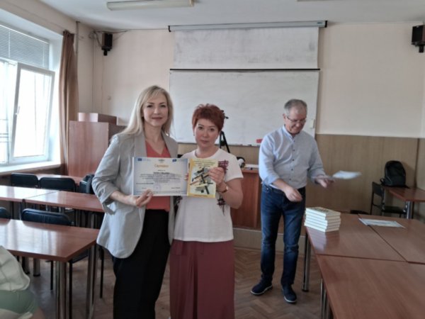 Кожен слухач після завершення навчання отримав сертифікат про підвищення кваліфікації, а також особистий подарунок від спікерів - їхній посібник "Теоретико-прикладні основи гендерних досліджень".