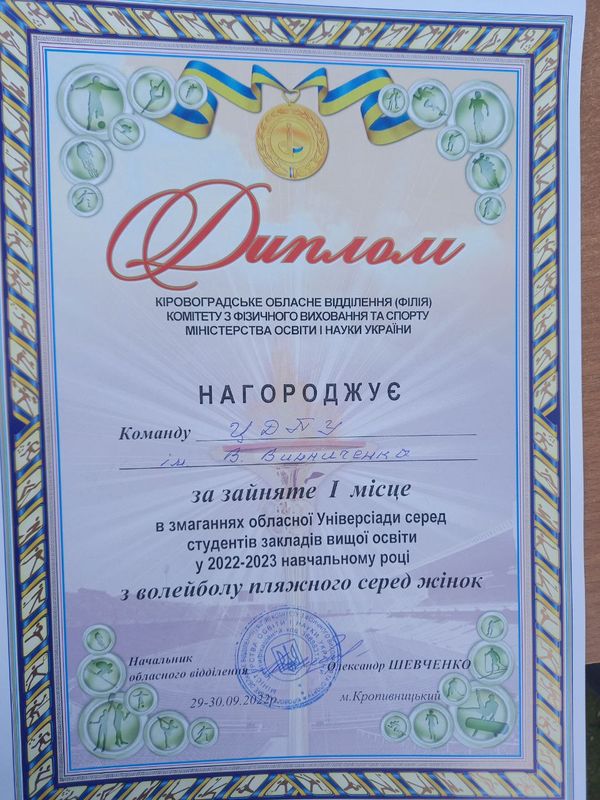 Вітаємо Аліну Крамаренко та Вікторію Шуляк, студенток факультету фізичного виховання ЦДПУ ім. В. Винниченка, з перемогою в обласній універсіаді з пляжного волейболу.