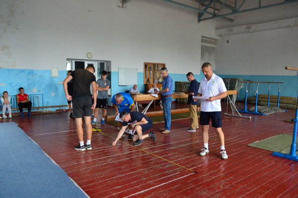 Предметна комісія прийняла нормативи (підтягування на перекладині, згинання і розгинання рук в упорі лежачі, стрибок у довжину з місця, піднімання тулуба в сід за 1 хв. та човниковий біг (4×9 м.)) у перших абітурієнтів.