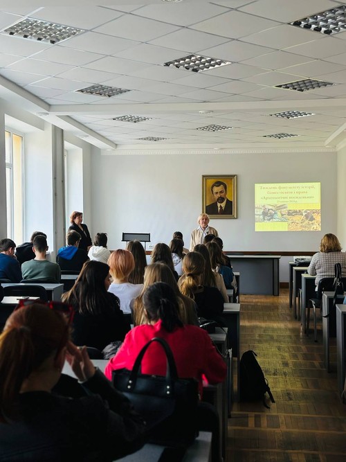 23 квітня 2024 року доценти Ірина Козир та Олександр Чорний провели «Археологічні посиденьки» для учнів Ліцею «Центральний». Захід відбувся у форматі науково-популярної лекції. З вітальним словом до гостей звернулися декан факультету – Лариса Філоретова та завідувачка кафедри – Оксана Бабак. Під час лекції дослідники розповіли про становлення археології у Європі та Україні, поділилися власним досвідом проведення розкопок і реконструкцій. Нагадаємо, що археологічна експедиція існує на факультеті вже понад 40 років, а ім’я її засновниці – Нінель Бокій присвоєне єдиному в області археологічному музею, що функціонує у стінах університету.