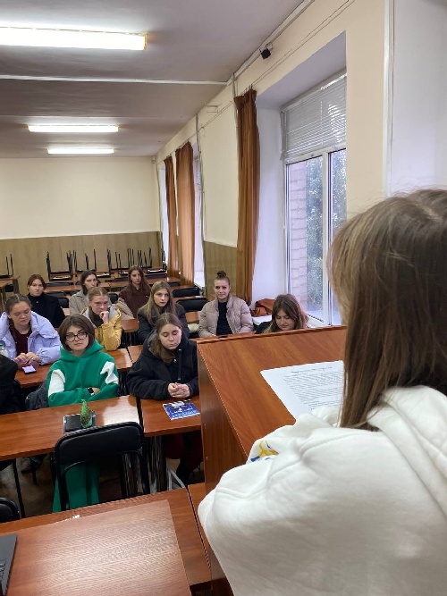 17 жовтня 2024 року студенти-консультанти юридичної клініки «Artium de Lex» Центральноукраїнського державного університету імені Володимира Винниченка Скрипник Марія та Бірюков Тарас завітали до студентів четвертого курсу ОП «Середня освіта (біологія та здоров’я людини, Хімія)», ОП «Середня освіта (Природничи науки)» з тренінгом на тему: «Основи трудового законодавства: особливості під час воєнного стану».