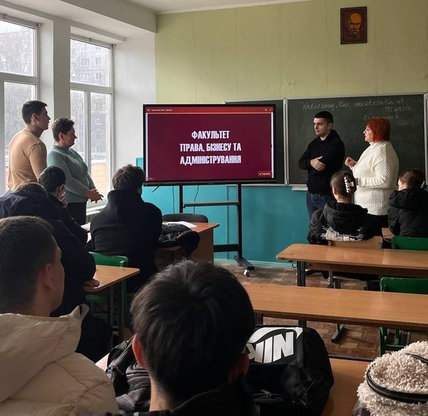 У межах профорієнтаційної роботи кафедри права та правоохоронної діяльності доцент Інна Зеленко та доцент Олена Окопник наголосили на перевагах та перспективах навчання в Університеті, співпраці з роботодавцями, практичній підготовці студентів. Презентуючи факультети та освітні програми університету, особливу увагу викладачі приділили фаховому коледжу «Alma Mater+», який пропонує абітурієнтам практико-орієнтоване навчання.