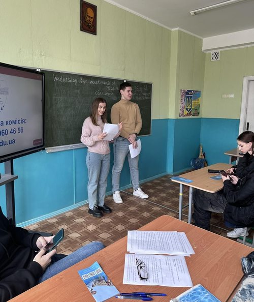 У заході взяли участь також представники Юридичної клініки «Artium De Lex» Олександр Кодема та Марія Скрипник. Студенти розповіли учням про особливості функціонування юридичної клініки, а також про активне студентське життя та постійну допомогу ЗСУ, пораненим бійцям і ветеранам війни. Крім того, з учнями правового класу було проведено правопросвітницький захід на тему «Права та свободи неповнолітніх в умовах воєнного стану», який завершився цікавим творчим конкурсом.