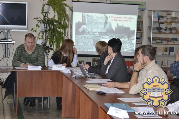 Чверть століття тому, 2 жовтня 1990 року, у Києві на майдані Незалежності (тоді – площі Жовтневої революції) студенти розбили наметове містечко й оголосили політичне голодування. Більшість становила молодь із Києва, Львова та Дніпропетровська. На їх підтримку почали страйкувати студенти всіх вищих навчальних закладів Києва, а також учні технікумів, ПТУ і старшокласники. Студентські акції протесту, хоча і не такі масові, пройшли і в обласних центрах. На відзначення цієї події на базі факультету історії та права КДПУ ім. В.Винниченка за участю департаменту освіти та науки облдержадміністрації відбулося засідання круглого столу «Майбутнє за молоддю».