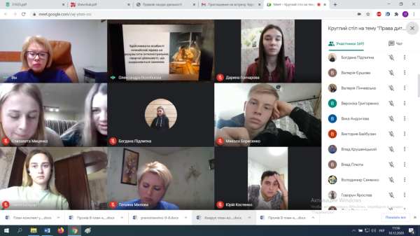10 грудня у Міжнародний День прав людини круглий стіл «Права дитини: міжнародне та вітчизняне законодавство» провели студенти факультету історії та права. Участь у цьому заході взяли представники майже всіх спеціальностей факультету – 014.03 Середня освіта (Історія), 081 Право, 262 Правоохоронна діяльність.