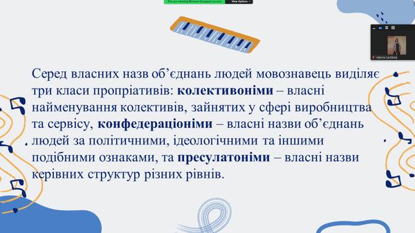 Так було й 3 листопада 2022 року. Виступати з доповіддю «Власні назви хореографічних колективів Кропивниччини: номінаційні та словотвірні параметри», яку супроводжувала мультимедійна презентація, мала магістрантка Анастасія Круть. Проте в неї відключили електроенергію саме о 16:00, коли ми почали роботу. Студентка дуже переживала, встигла написати повідомлення. Добре, що Анастасія надіслала мені текст виступу та презентацію буквально за 10 хвилин до 16-ї години. Тому я озвучувала доповідь, а студентка ІІ курсу Богдана Мотько демонструвала слайди.