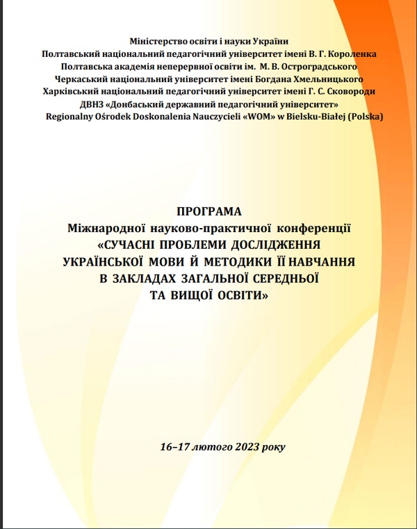 16–17 лютого 2023 року в Полтавському національному педагогічному університеті імені В.Г.Короленка відбулася Міжнародна науково-практична конференція «Сучасні проблеми дослідження української мови й методики її навчання в закладах загальної середньої та вищої освіти», у якій узяли участь члени кафедри української філології та журналістики.
