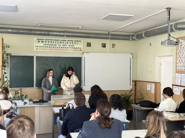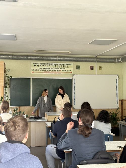 29 лютого 2024 року студенти 307 групи Л21Б Голумбовська Д., Рева Я. та Коростієнко М. відвідали КЗ "Вікторія П Кропивницької міської ради". Вони під час класної години спілкувались з учнями трьох 11-х класів.