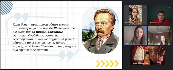 У невимушеній святковій атмосфері учасники гуртка поділилися власними роздумами про постать Тараса Григоровича Шевченка, звернули увагу на актуальність творчості генія для кожного покоління українців, показали, як Мойсей української нації допомагає нині боротися проти російських окупантів і на інформаційно-екзистенційному фронті, і в окопах на передовій.