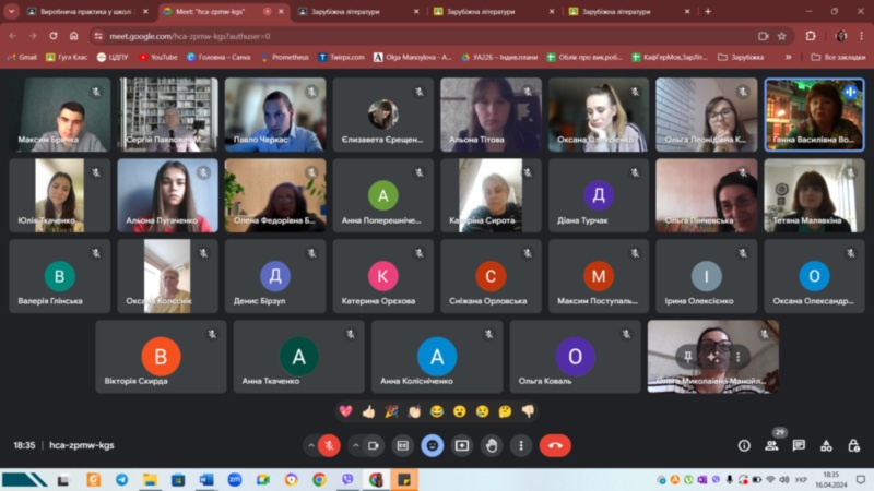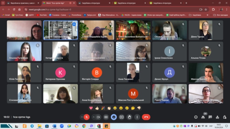 Високу зацікавленість у змісті заходу здобувачі освіти виражали також і реакціями в чаті. Усі методисти з фаху висловили позитивну оцінку результатів діяльності магістрантів. Доцентка кафедри української філології та журналістики Ганна Василівна Волчанська, крім того, зазначила, що кожне проходження практики є унікальним і передбачає різний підхід до навчання через стрімку мінливість світу. Подібною була й думка Ольги Миколаївни Манойлової, старшої викладачки кафедри германських мов, зарубіжної літератури та методики їхнього навчання. Доцентка кафедри української філології та журналкістики Інна Миколаївна Демешко подякувала здобувачам освіти за добросовісне ставлення до роботи та своєчасне надсилання матеріалів. Завідувачка кафедри української філології та журналістики, професорка Ольга Леонідівна Кирилюк звернула увагу присутніх на те, що для деяких студентів обговорювана педагогічна практика стала джерелом нового досвіду через неспорідненість їхньої першої спеціальності. Доцентка кафедри української філології та журналістики Олена Федорівна Буряк приєдналася до висловлених оцінок та вітань.