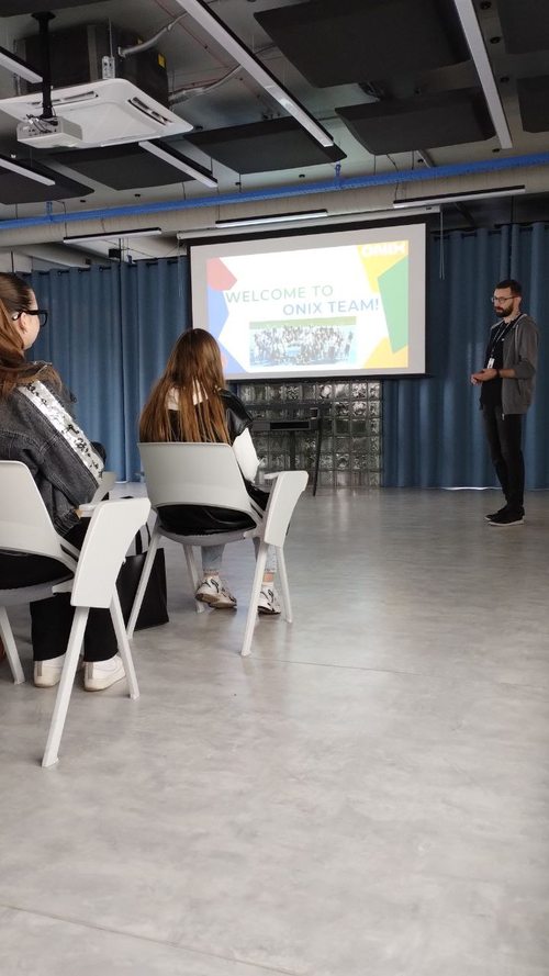 У вівторок, 15 жовтня 2024 року, у приміщенні ТОВ «ОНІКС-СІСТЕМЗ» відбулася зустріч студентів третього та четвертого курсів факультету української філології, іноземних мов та соціальних комунікацій, що навчаються на освітньо-професійній програмі «Філологія (Прикладна лінгвістика (англійська мова) і Германські мови та літератури (переклад англійська мова включно))» з представником HR відділу стейкхолдерів програми Максимом Іванченко.