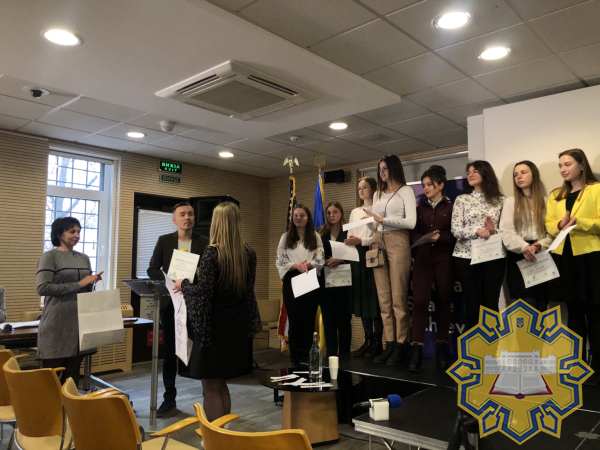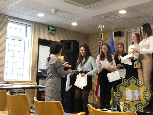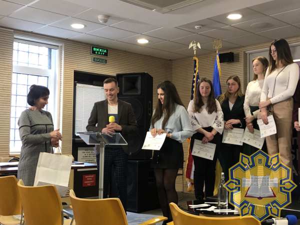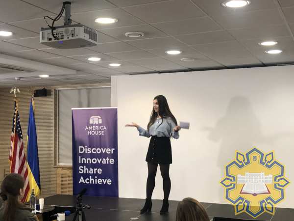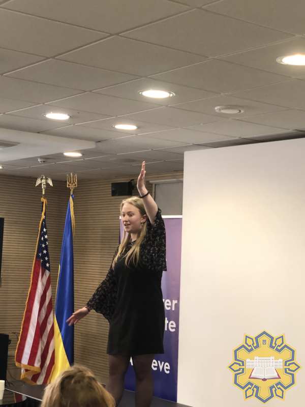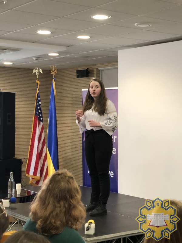 The speeches were assessed by honourable adjudicators, who were: 1) James Whittingham, Program and Development Associate at IREX in Ukraine; 2) Pei Tsai, US Embassy Political Officer; 3) Dr Larysa Yarova, ESU Ukraine steering committee member, Head of Translation, Applied and General Linguistics Department of CUSPU; 4) Yuliia Vereschak, ESU Ukraine member, one of the top 5 finalists of the International Teacher Award 2019; 5) Vladyslav Danyleiko, ESU Ukraine steering committee member, Lawyer, DLA Piper Ukraine, 2014 NPSC winner and IPSC participant.