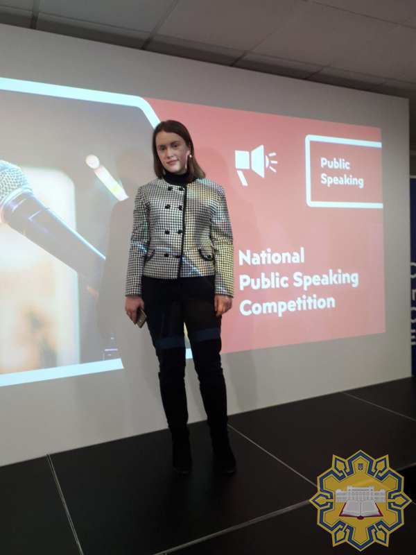 After the judges’ decision seven best speakers proceeded to the Final where they delivered impromptu speeches. And after all the impromptu presentations the winner of the NPSC 2020 was announced who is Nikol Korolchuk, who is originally from Uzhhorod and now is a student of Kyiv National Economic University named after Vadym Hetman. She appeared to be the best speaker according to the audience choice. The runner up was Veronika Zimon, a student from National University of Ukraine “Dnipro Politech”.