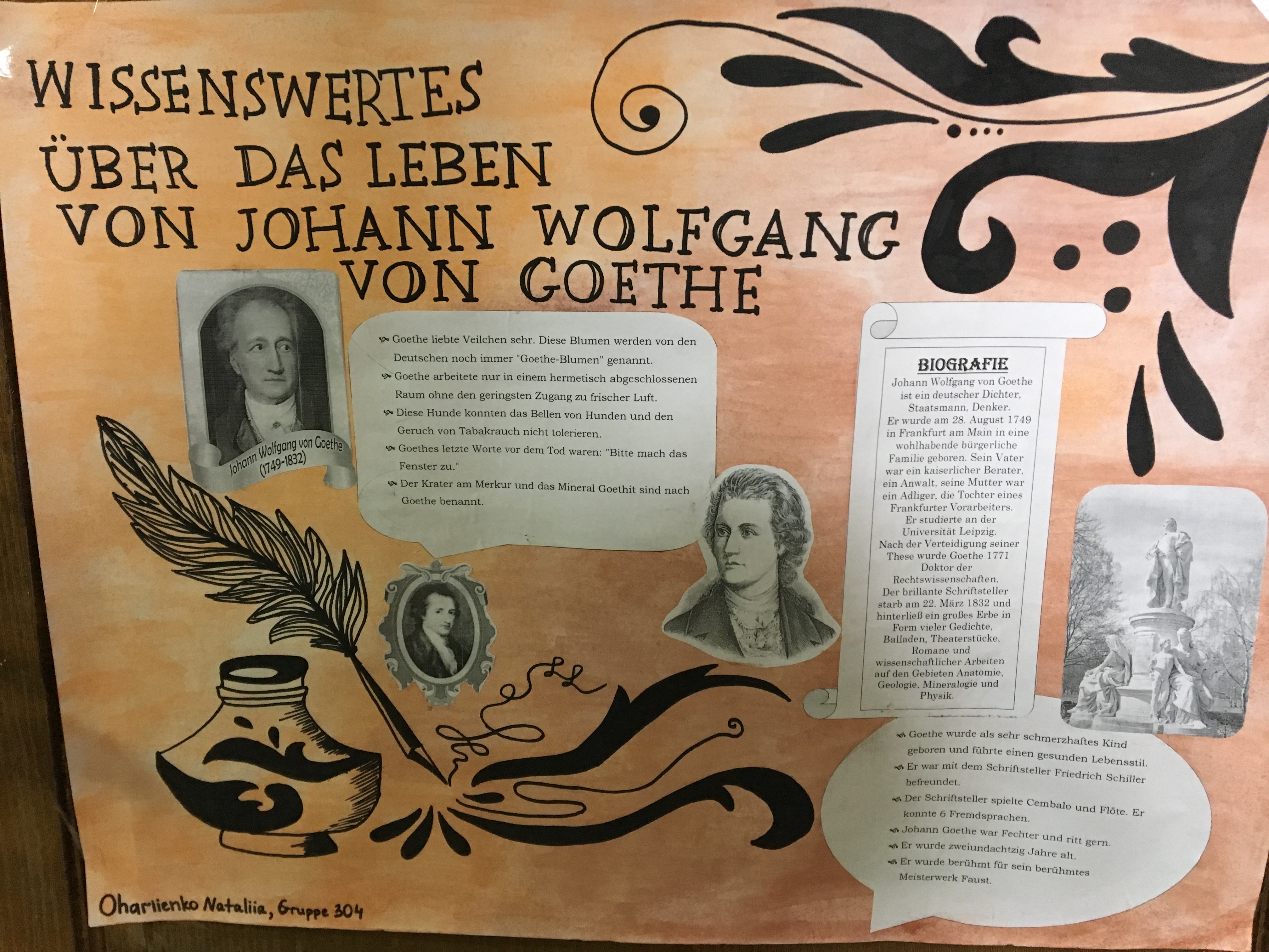 В рамках «Gоеthe-Fest», тижня присвяченого творчості Йоганна-Вольфґанґа фон Ґете, який проводила кафедра німецької мови та методики її викладання факультету іноземних мов 21-25 жовтня 2019 року, відбулося ряд заходів.