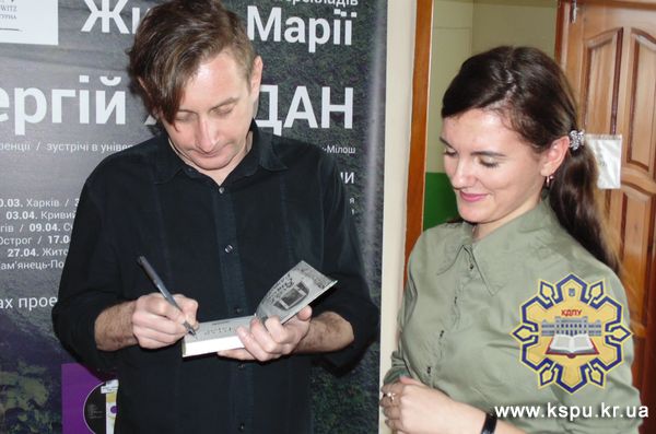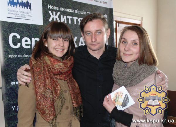 На завершення, дві студентки факультету філології та журналістики, вирішили не ставити Сергію запитань, а присвятили йому авторський вірш. Поет розчулився і визнав, що у нас дійсно найкращий філологічний факультет. Презентацію книги Сергій Жадан продовжив увечері у театрі ім. М. Кропивницького.