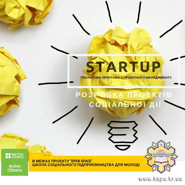 Тематика – видавничі проекти соціальної дії. Серія тренінгів з проектного менеджменту "Startup" (розробка проектів соціальної дії) є одним із етапів проекту "Openspace", який відбувається за підтримки Британської ради в Україні в межах програми "Activecitizens".