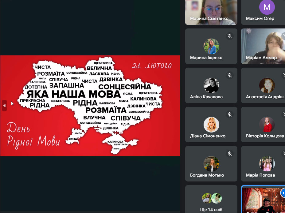 21 лютого 2024 року ввечері з нагоди Міжнародного дня рідної мови на факультеті української філології, іноземних мов та соціальних комунікацій у спеціальному гугл-класі відбулася традиційна фразеофеєрія, або лінгвістично-гумористична забава, «Фразеологія – як життя, життя – як фразеологія».