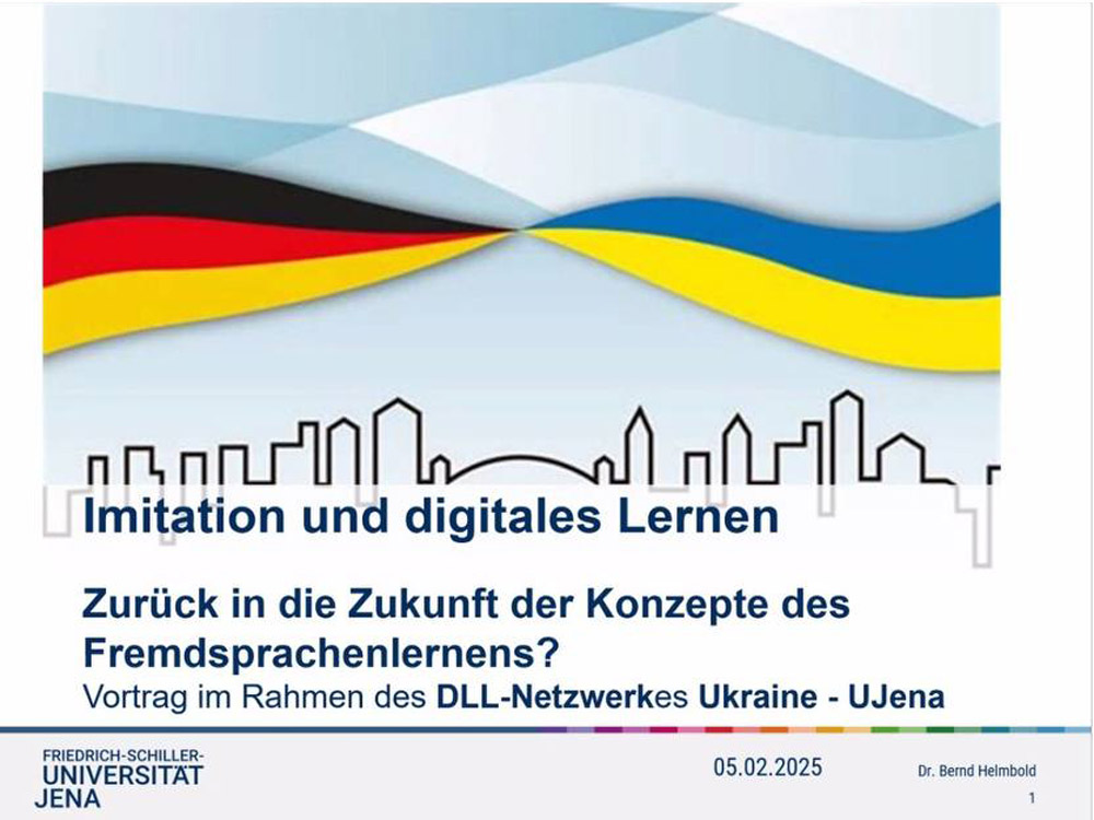 5 та 7 лютого 2025 року доценти Ірина Пянковська і Тетяна Токарєва, а також студенти освітньої програми Середня освіта (Англійська й німецька мови та зарубіжна література) мали можливість послухати лекції професорів Єнського університету Бернда Гельмбольда на тему «Imitation und digitales Lernen. Zurück in die Zukunft der Konzepte des Fremdsprachenlernens?» та Міхаеля Шарта на тему «Didaktisches Design für den universitären Deutschunterricht» у межах співпраці з Goethe-Institut Ukraine за програмою «DLL – Вчимося навчати німецької».