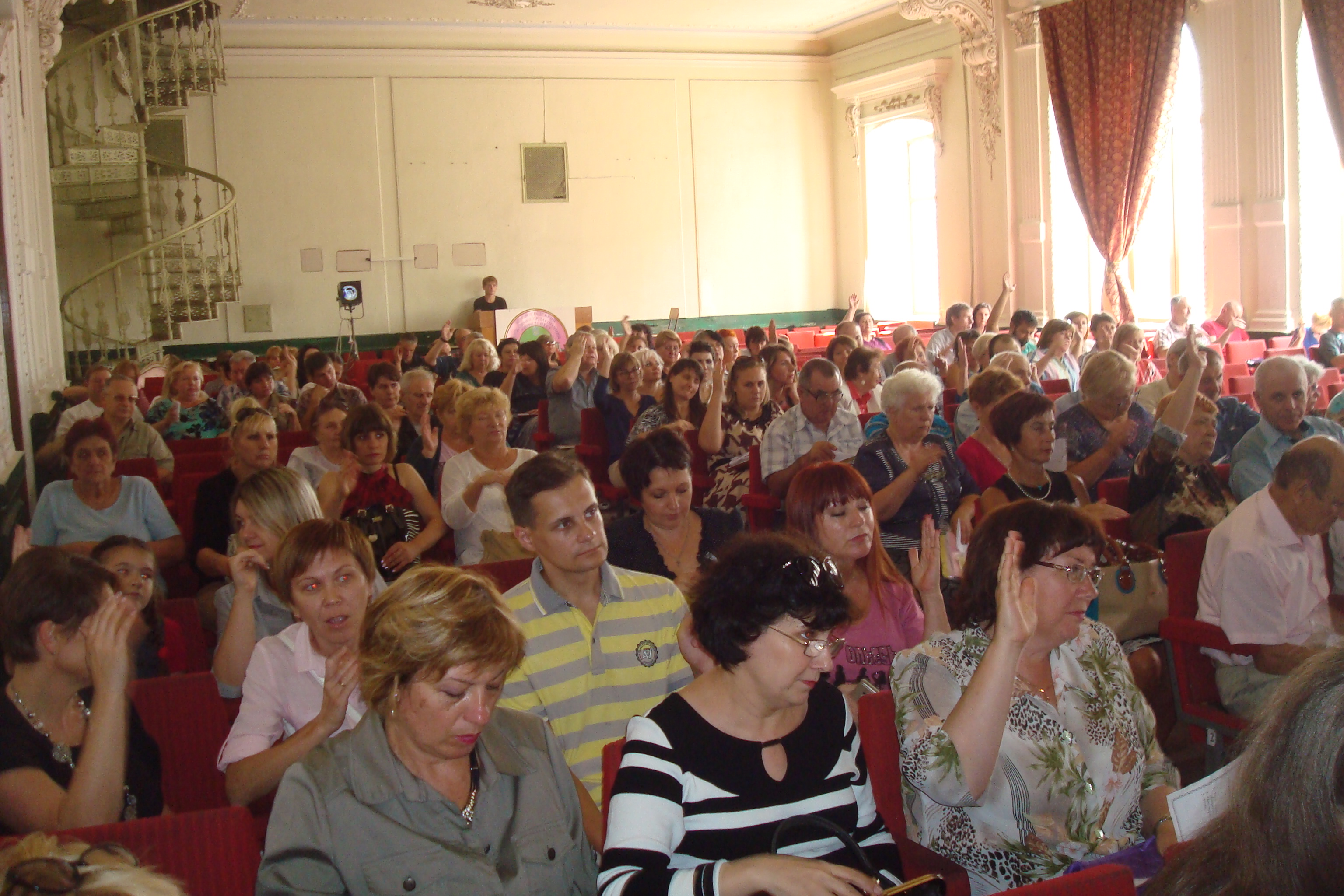 З другого питання виступила голова первинної профспілкової організації Центральноукраїнського державного педагогічного університету ім. В. Винниченка Л.В. Пономаренко, яка зауважила, що винести питання про трудові відносини в університеті та перспективи розвитку на обговорення профспілкової конференції змусила ситуація із скороченням ставок. Вона відзначила, що в університеті є декілька категорій працівників із визначеними нормами – це науково-педагогічні працівники та прибиральниці. Решта працюючих цих норм не мають. Уже декілька років іде скорочення ставок на кафедрах. Спочатку це відбувалося за рахунок вакантних посад, які ділились на частини ставки. Йшли на пенсію викладачі, що також частково знімало напругу зі ставками на кафедрах. Зараз ситуація складається уже таким чином, що на багатьох кафедрах викладачі працюють на неповну ставку, і ректорат не оголошує конкурс на вакантні посади, бо їх немає.