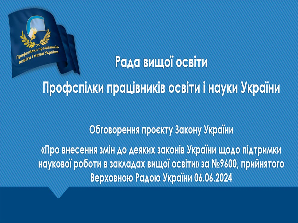 6 червня 2024 року Верховна Рада України прийняла Закон України «Про внесення змін до деяких законів України щодо підтримки наукової роботи в закладах вищої освіти», яким передбачається зміна основних посад науково-педагогічних працівників, запровадження педагогічних посад в закладах вищої освіти, зменшення кількості годин навчального навантаження та встановлення мінімального обсягу виконання наукової роботи науково-педагогічними працівниками тощо.