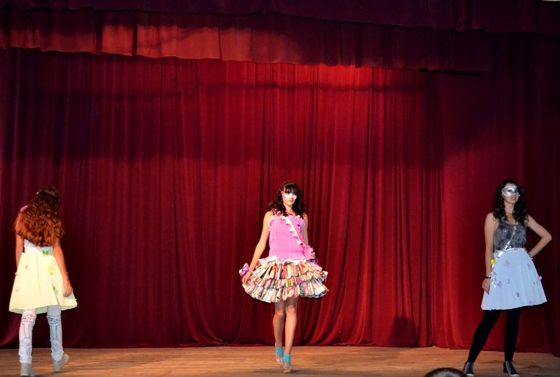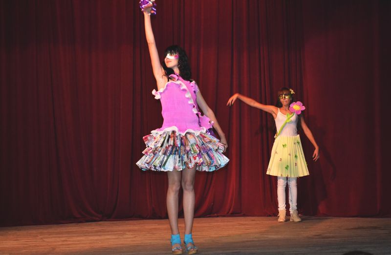 Яскравим був номер Карини Кошелевої: на сцені відбувся справжній показ мод, колекція зроблена з паперу. Глядачі побачили мистецтво орігамі.