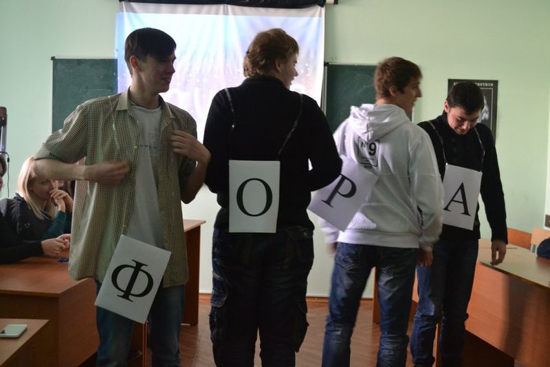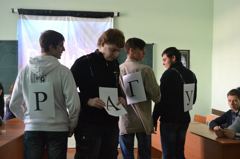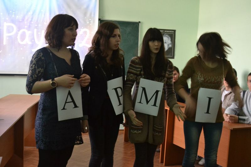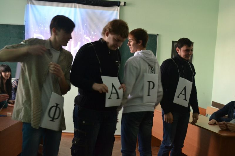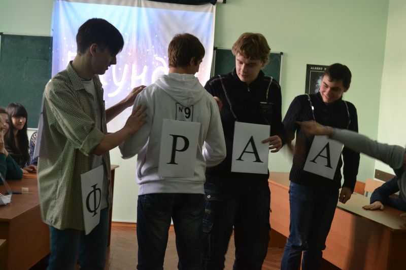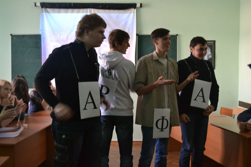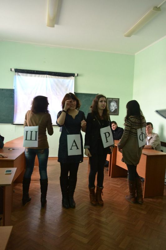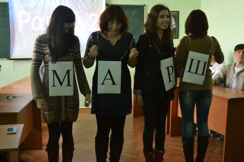 Організаторами, авторами сценарію і ведучими були старости груп Анастасія Герасименко (13) та Ольга Ткаченко (23). Команду дівчат склали: Буряк Ірина (23), Левченко Катерина (23), Зубець Анастасія (23), Барвінок Дар’я (13), Кошелева Каріна (13), Цирдя Вікторія (13). Команда хлопців: Цигульський Сергій (23), Луценко Артем (23), Іванченко Володимир (23), Дяченко Богдан (13), Васеха Дмитро (13), Душейко Дмитро (13).