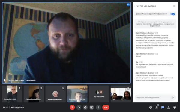 Також на факультеті математики, природничих наук та технологій провели годину спілкування на тему «Інформаційна та гібридна війна як загроза сучасній Україні». Спікером став кандидат політичних наук, доцент, експерт-консультант у галузі політичних технологій і політичного піару Руслан Вікторович Стадніченко. Доповідач охарактеризував сучасне суспільно-політичне становище України, висвітлив особливості міжнародних відносин та окреслив перспективи їх подальшого розвитку. Руслан Вікторович приділив окрему увагу проблемі гібридної війни, пояснив, як убезпечити себе та рідних від негативного впливу фейкової інформації, яка останнім часом інтенсивно заполонила Інтернет-простір.