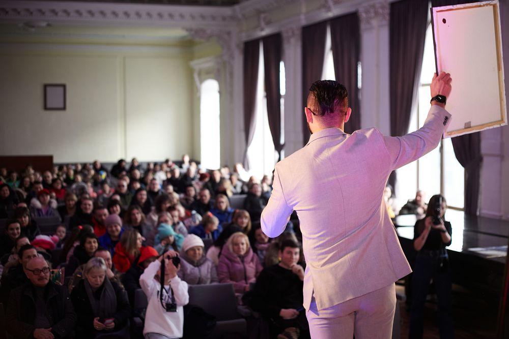 В актовій залі Центральноукраїнського державного університету імені Володимира Винниченка відбувся благодійний концерт проєкту «Творчі волонтери», ведучим якого виступив Євген Жердій.