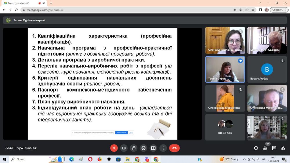 14 березня 2023 року на кафедрі технологічної та професійної освіти відбулася гостьова лекція для студентів спеціальностей «014 Середня освіта (Трудове навчання та технології)», «015 Професійна освіта (Технологія виробів легкої промисловості)», «015 Професійна освіта (Цифрові технології)». Цього разу спікеркою стала Тетяна Суріна, методистка професійної підготовки Навчально-методичного кабінету професійно-технічної освіти у Кіровоградській області. Вона представила доповідь на тему «Особливості організації освітнього процесу в системі професійної (професійно-технічної) освіти»