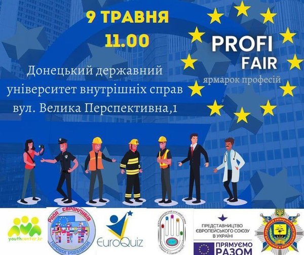 Сьогодні, 9 травня, у рамках святкування Дня Європи в Україні пройшов ярмарок професій ProfiFair. Співорганізаторами заходу виступили Донецький державний університет внутрішніх справ, Центральноукраїнський державний університет імені Володимира Винниченка та Центральноукраїнський державний будинок художньої та технічної творчості, за сприяння Представництва Євросоюзу в Україні.
