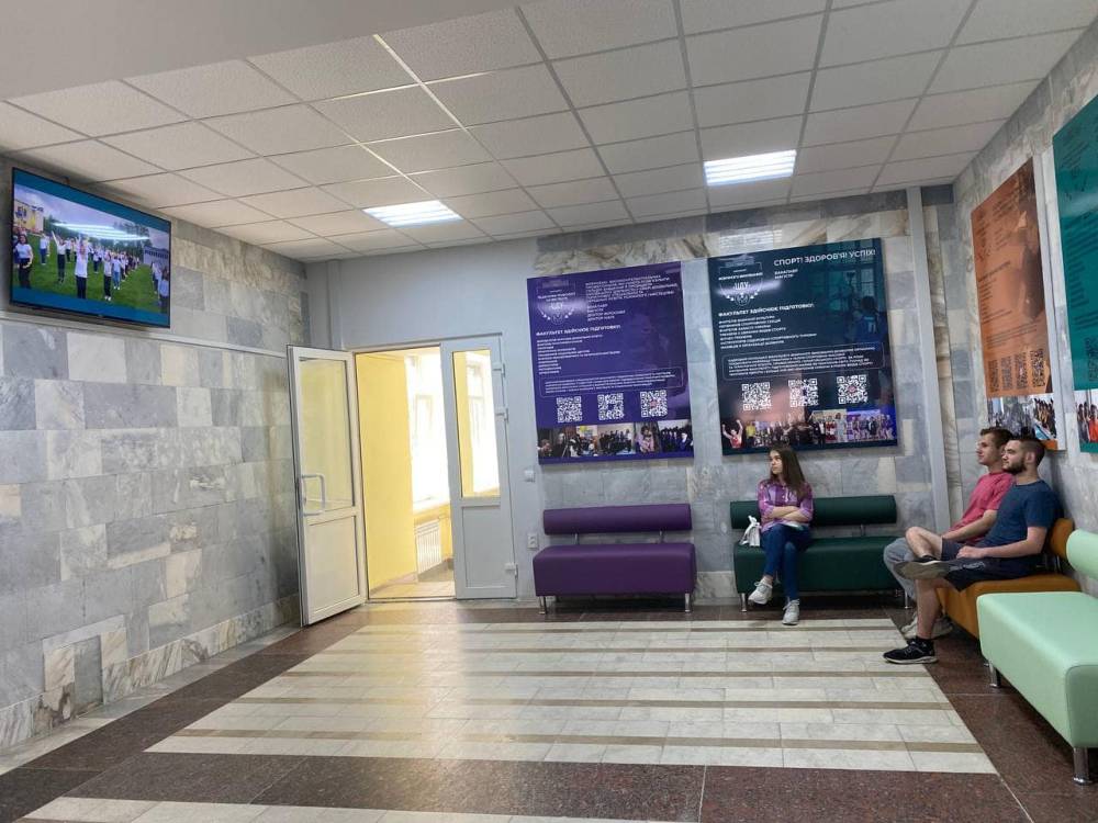 Крім того, нещодавно проведені ремонтні роботи у фойє навчального корпусу №5, неподалік приймальної комісії, встановлені зручні лавки для сидіння, інформаційні панелі та рекламні банери.