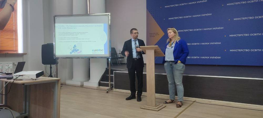 Поважні гості прибули на запрошення Ради молодих учених при Міністерстві освіти і науки України. Під час зустрічі обговорювалися питання діяльності Євродок, Ради молодих вчених при МОН, Ради молодих вчених НАН, Рад молодих вчених різних областей України впродовж війни. Ботузова Ю.В. виступила з доповіддю «Наукова діяльність молодих вчених Кіровоградщини», ознайомивши присутніх з особливостями діяльності молодих вчених нашого регіону: специфікою, проблемами, досягненнями та візією перспектив розвитку. Під час зустрічі актуалізувалися питання налагодження та оптимізації співпраці осередків молодих науковців України та Європи.