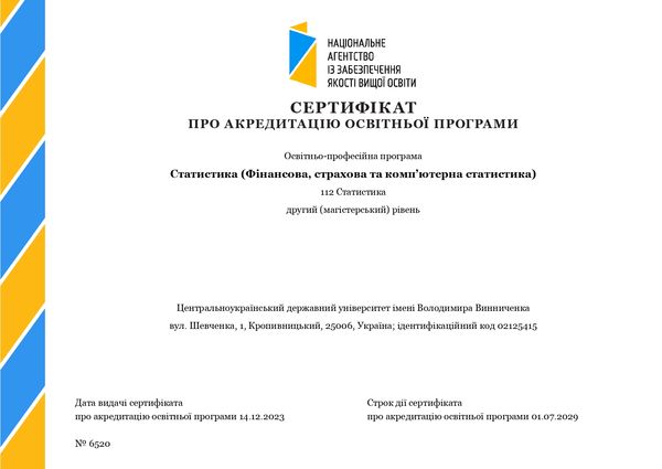 - 112 Статистика (гарант освітньо-професійної програми: к.ф.-м.н., доц. К.С. Акбаш).