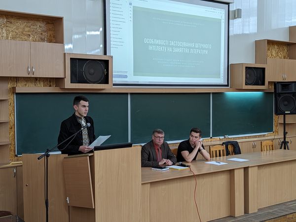 студент І курсу другого (магістерського) рівня вищої освіти факультету української філології, іноземних мов та соціальних комунікацій Бричка Максим – «Особливості застосування штучного інтелекту на заняттях літератури» (науковий керівник – доктор філологічних наук, професор Фока Марія Володимирівна).