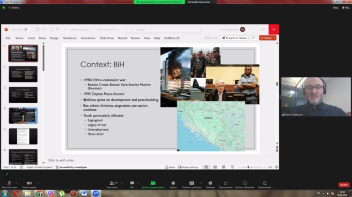 Студенти ознайомилися з досвідом професора Единбурзького університету Найджела Осборна, який 20 років працює з дітьми в зонах конфліктів, застосовуючи свою методику мистецтва для подолання кризових станів.