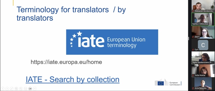 Уже другий рік поспіль ЛШП підтримує Генеральний Директорат Європейської Комісії з питань перекладу, цьогоріч – в особі Єгідіюса Заікаускаса, Сігіти Станкевічіне та Тетяни Жарко, які висвітлили специфіку роботи з термінологією в Генеральному Директораті. Також вони зосередилися безпосередньо на аналізі виконаних учасниками ЛШП перекладів юридичних документів, особливо на використаній у них термінології.